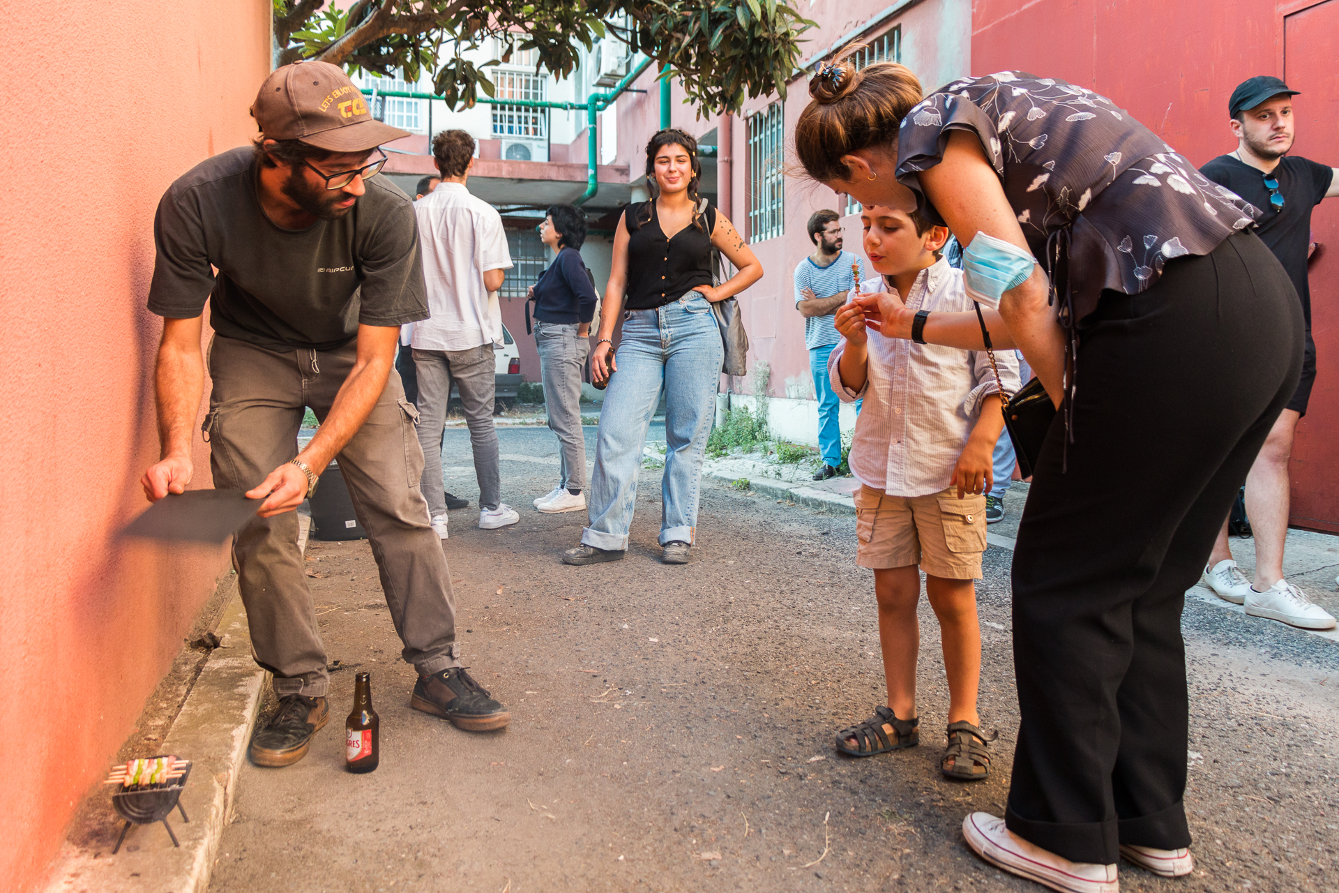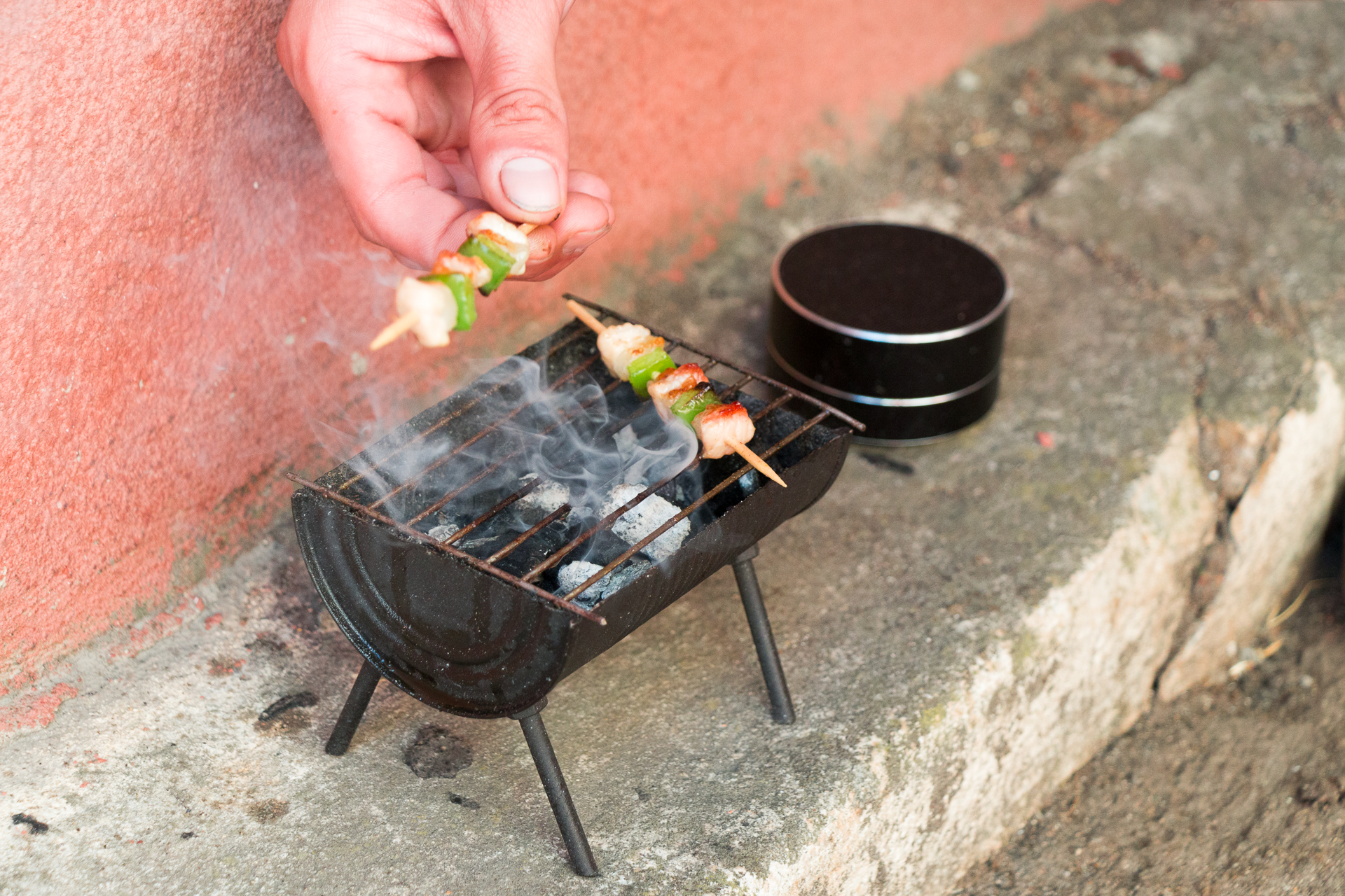 Performance, DIY miniature barbecue grill and pork skewers, wireless speaker, dimensions variable